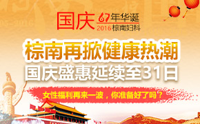 国庆华诞,和谐盛世。成都棕南医院隆重推出“棕南健康盛惠”活动,与蓉城百姓共庆祖国67年华诞,国庆盛惠延续至31日,凡10月31日前到 院诊疗的患者皆可享受国庆三重健康好礼,包括一系列健康体检和治疗减免优惠, 还有一大波“红包”火热来袭,你准备好了吗?